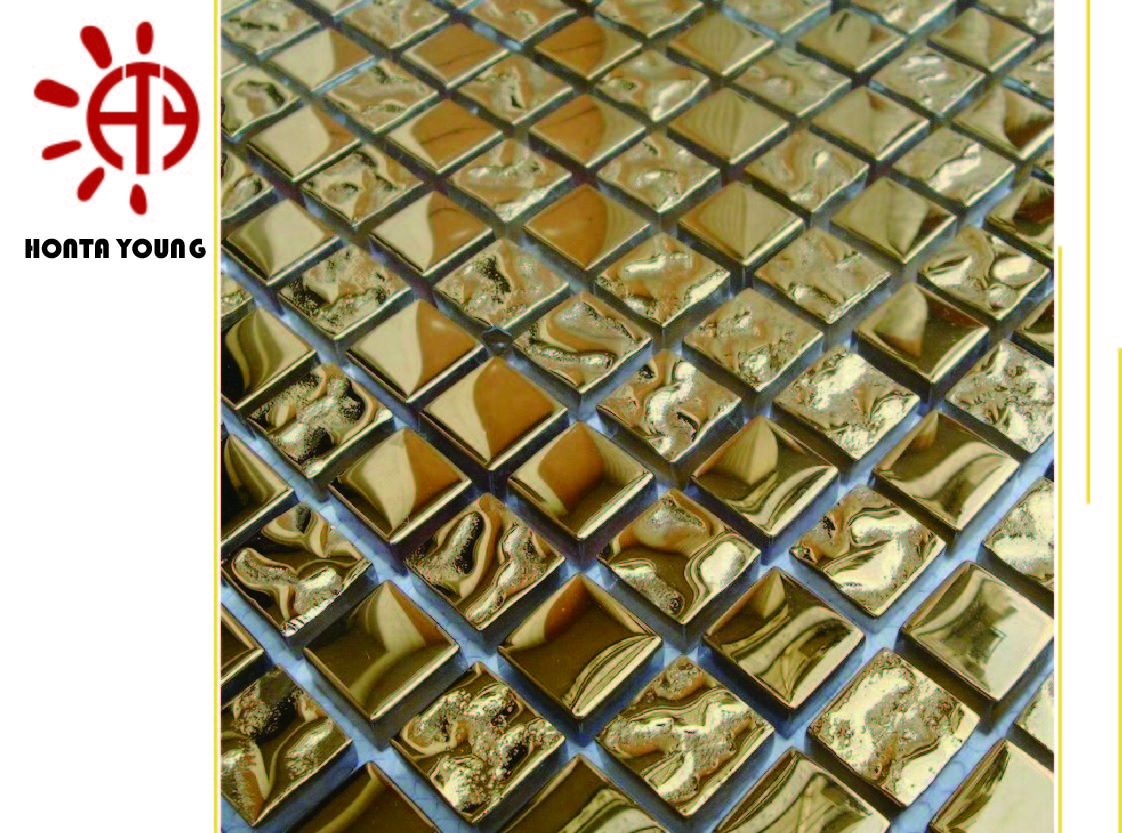 HONTA YOUNG - HTY - TG - 300 Gold Mosaic Tile With Electroplating, is to coat one thin film of metal or alloy on the surface of mosaic tile, improving the corrosion resistance, wear resistance, weather resistance, reflective effects and brightness, as well as easy to install and clean.